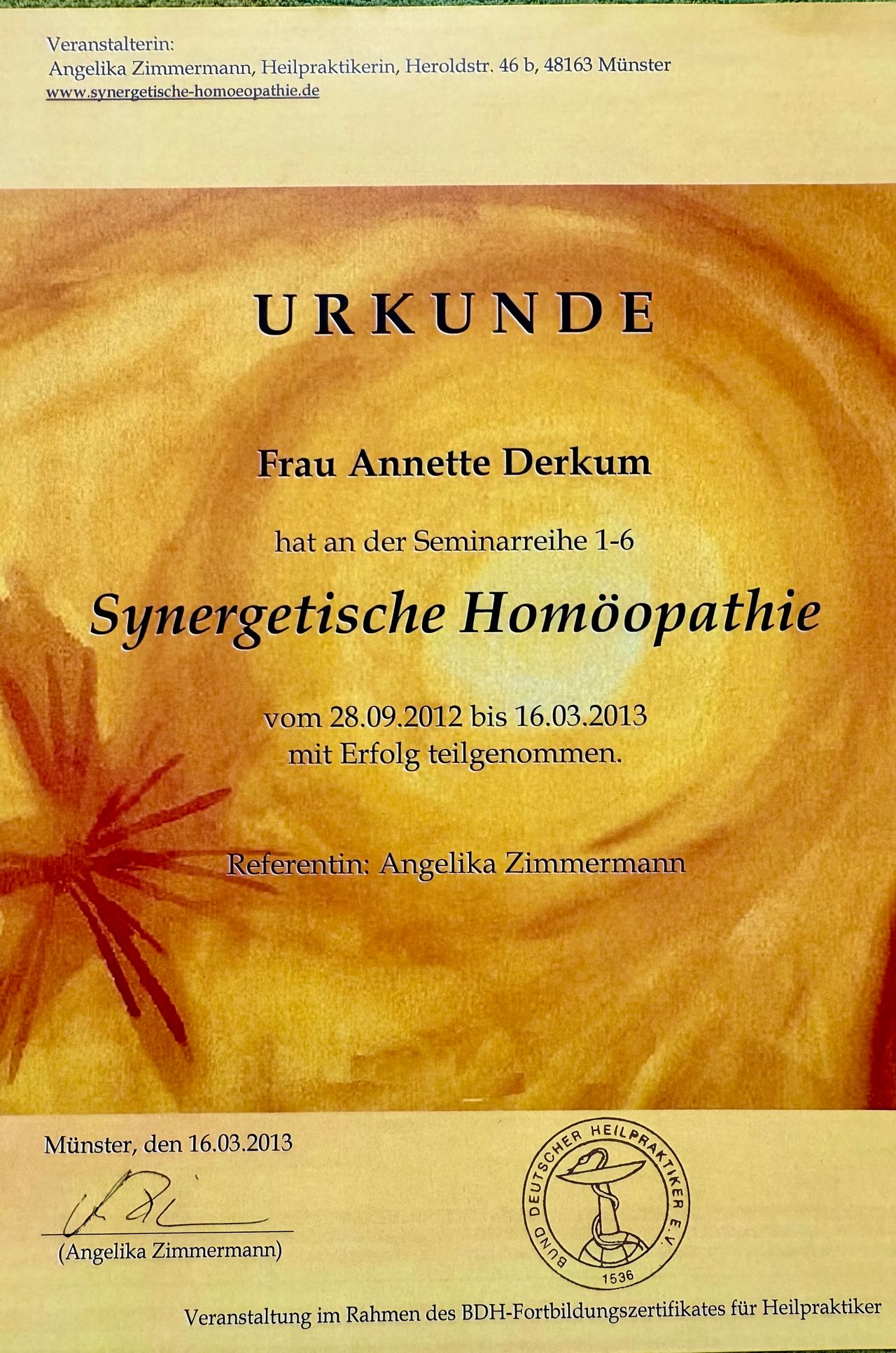Ausserdem konnte sie mich gut beraten durch ihre langjährige Erfahrung und ihr breites Angebot.• Heilpraxis Annette Derkum • Homöopathie •