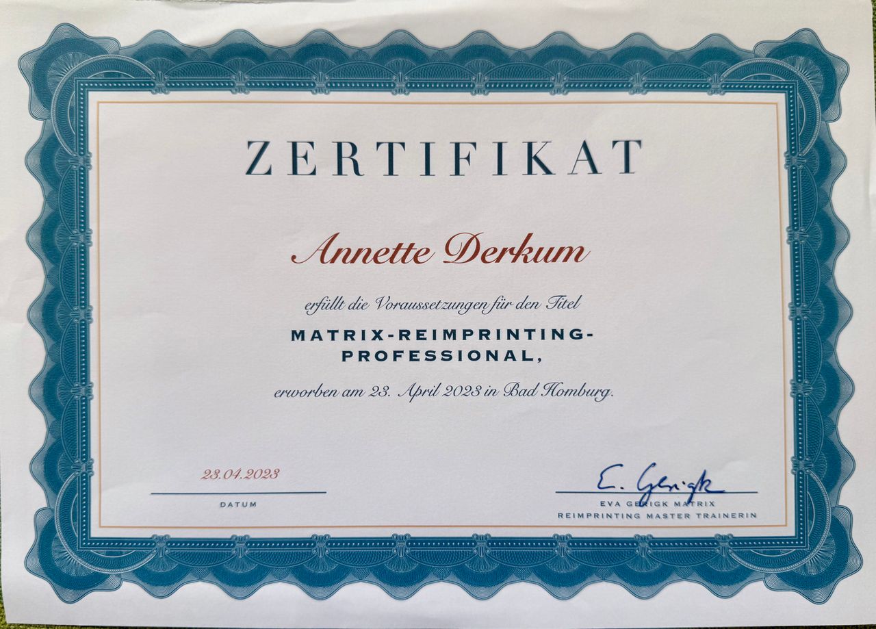 Dieses Wissen habe ich ergänzt durch Homöopathie, Matrix Reimprinting (eine Methode der energetischen Psychotherapie) und eine Ausbildung in systemischem Coaching.
