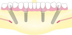 Ist der Ersatz aller oder vieler Zähne eines Kiefers notwendig kann durch Einsetzen von meist 4 Implantaten eine sog. Sofortbelastung vorgenommen werden. Hierbei erfolgt z.B. innerhalb von 24 Stunden das Einsetzen eines (provisorischen) Zahnersatzes.