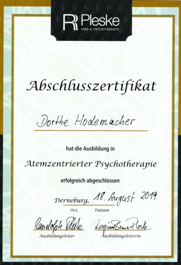 Die Atemzentrierte Psychotherapie habe ich in einer intensiven dreijährigen Ausbildung bei Randolph und Regina Pleske erlernt.