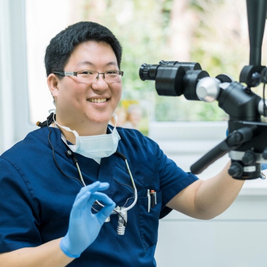Er erneuerte eine Wurzelbehandlung eines Zahns im Frontbereich, die durch den alten Zahnarzt nicht optimal durchgeführt wurde, wodurch der Zahn Schmerzen bereitete. Die Wurzelbehandlung durch Dr. Nguy verlief absolut professionell. Auch die notwendige Überkronung führten er und das Team hervorragend durch.