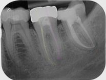 Wurzelkanalbehandelte Zähne werden oft dunkler mit der Zeit. Grund dafür sind im Kanalsystem verbliebenes Blut oder Bakterien. Um die Zahnfarbe anzugleichen muss erst mal die Qualität der Wurzelkanalbehandlung röntgenologisch kontrolliert werden. Dann wird der entsprechende Zahn geöffnet und ein Bleichmittel eingelegt.
