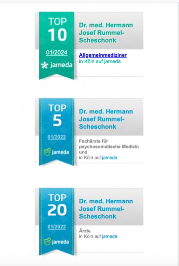ich, Dr. med. Hermann Josef Rummel-Scheschonk, freue mich, dass Sie mein jameda-Profil besuchen. Hier erhalten Sie Informationen über mich und unsere hausärztlichen Gemeinschaftspraxis in Köln-Lindenthal. Zu meinen Spezialgebieten zählen u.a. Psychotherapie und Psychosomatik. Ich möchte, dass Sie bei uns rundum gut versorgt sind und bin Ihr Ansprechpartner, wenn Sie eine Basisversorgung oder einen Routine-Check in Anspruch nehmen möchten. Darüber hinaus berate ich Sie auch in allen Fragen der Prävention mit einem breiten Wissensspektrum und empfehle Ihnen die ärztliche Leistung, die zu Ihnen und Ihrem Beschwerdebild passt.