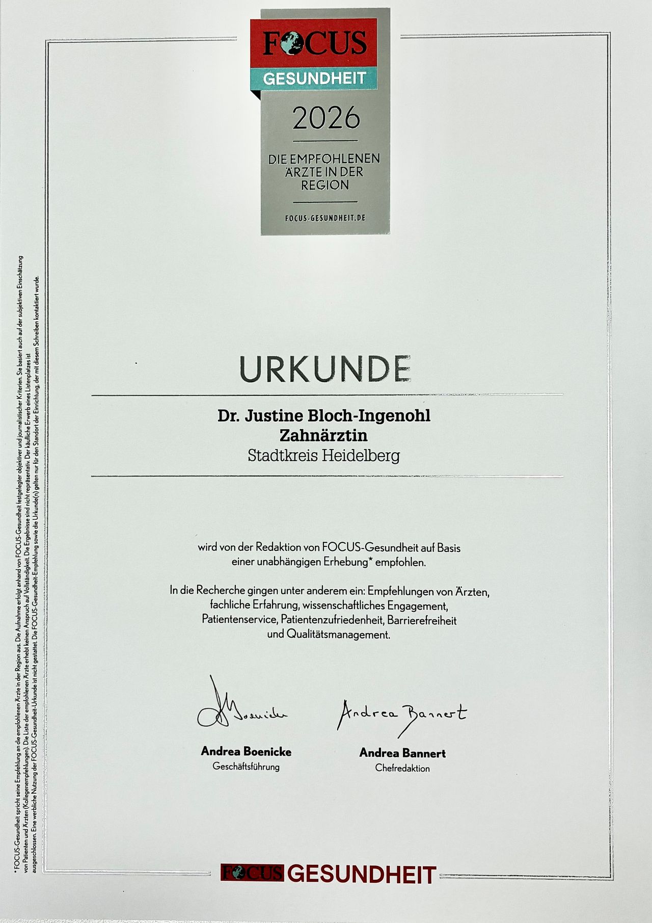 Bei der Behandlung ist es mir besonders wichtig dass sie sehr gründlich und nach den neuesten wissenschaftlichen Erkenntnissen durchgeführt wird. Daher sind kontinuierliche Fortbildungsmaßnahmen für uns unverzichtbar.