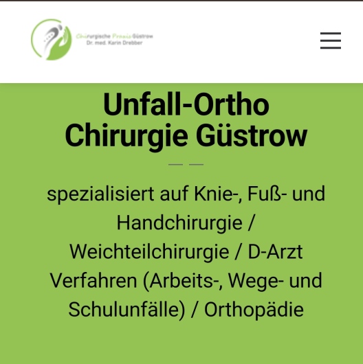 Unfall-Ortho-Chirurgie Güstrow Dr.med. Karin Drebber Fachärztin für Orthopädie und Unfallchirurgie / D-Ärztin