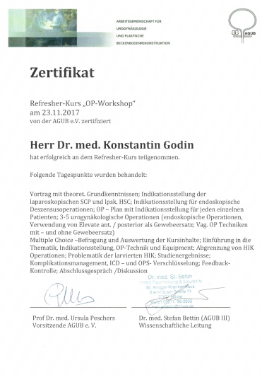 11/2017 Refresher-Kurs in Beckenbodenchirurgie, St. Ansgar-Krankenhaus Höxter