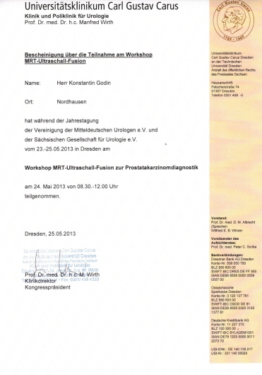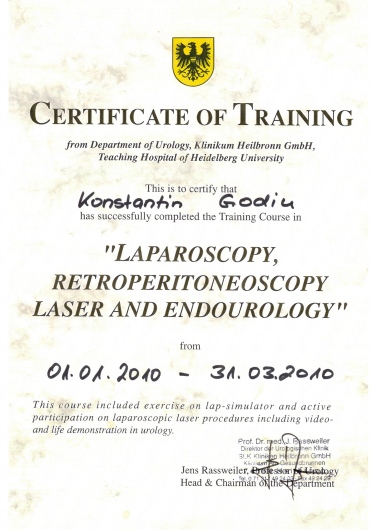 12/2007 Einwöchiges Endourology Fellowship, SLK Kliniken Heilbronn
