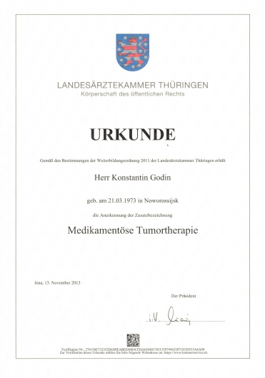2013 Erwerb der Zusatzbezeichnung “Medikamentöse Tumortherapie”
