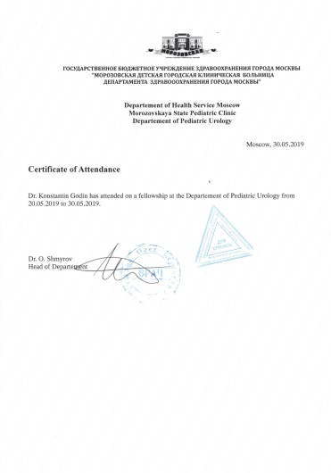05/2019 und 07/2019 Fellowship in der Kinderurologie Morosowskaja Kinderklinik Moskau