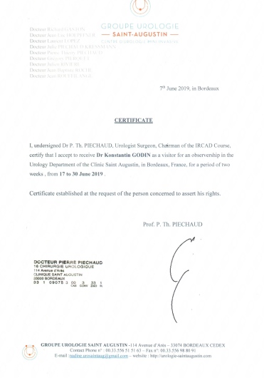 06/2019 Fellowship an der Clinique Saint Augustin Bordeaux (Prof. Richard Gaston)