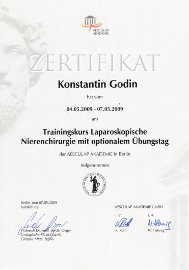 05/2009 Kurs „Laparoskopische Nierenchirurgie“, Aesculap Akademie Berlin
