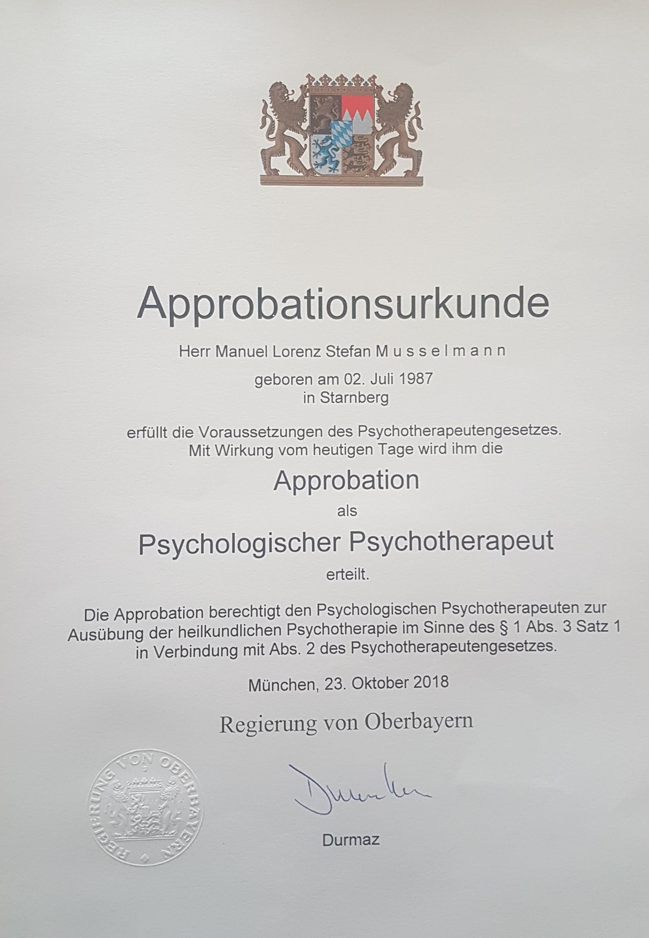 Ihr Psychologischer Psychoterapeut Dipl.-Psych. Manuel Musselmann