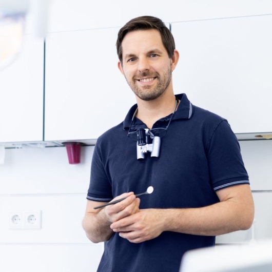 Michael Camenz ist seit 2019 als Zahnarzt in der Praxis tätig und führt die Praxis seit 2022 gemeinsam mit Dr. Satzl. Sein Spezialgebiet ist die Implantologie.
