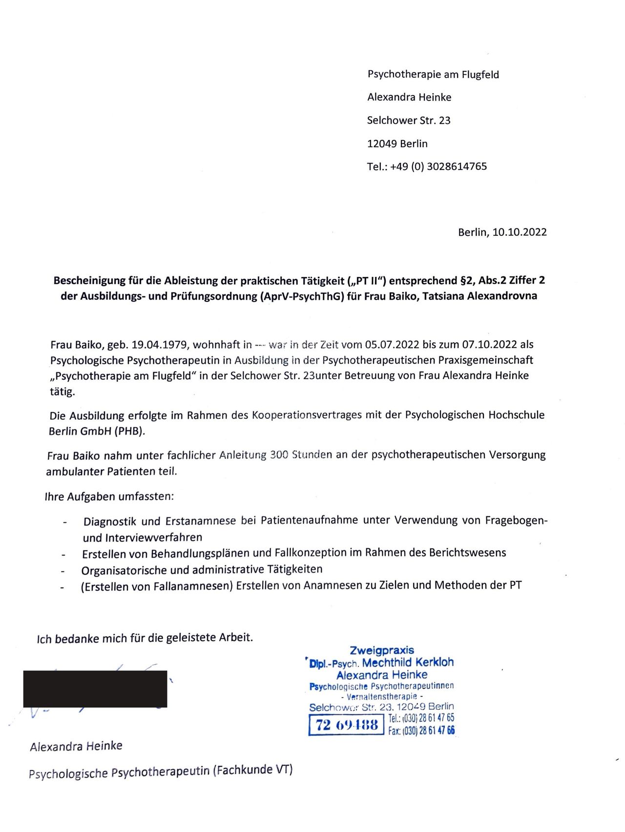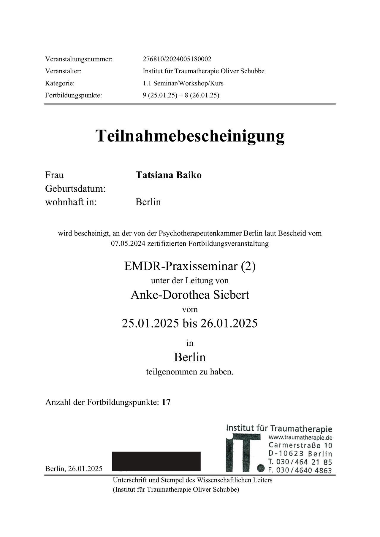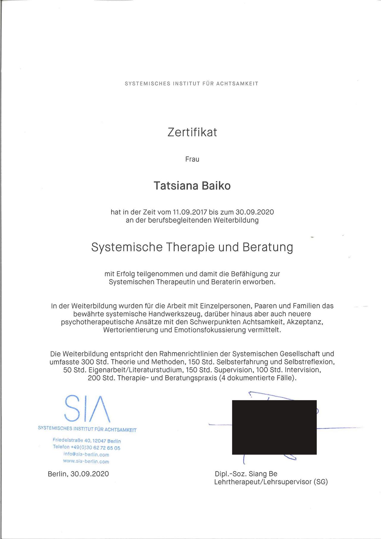 Privatpraxis Tatsiana Baiko Psycholog. Psychotherapeutin