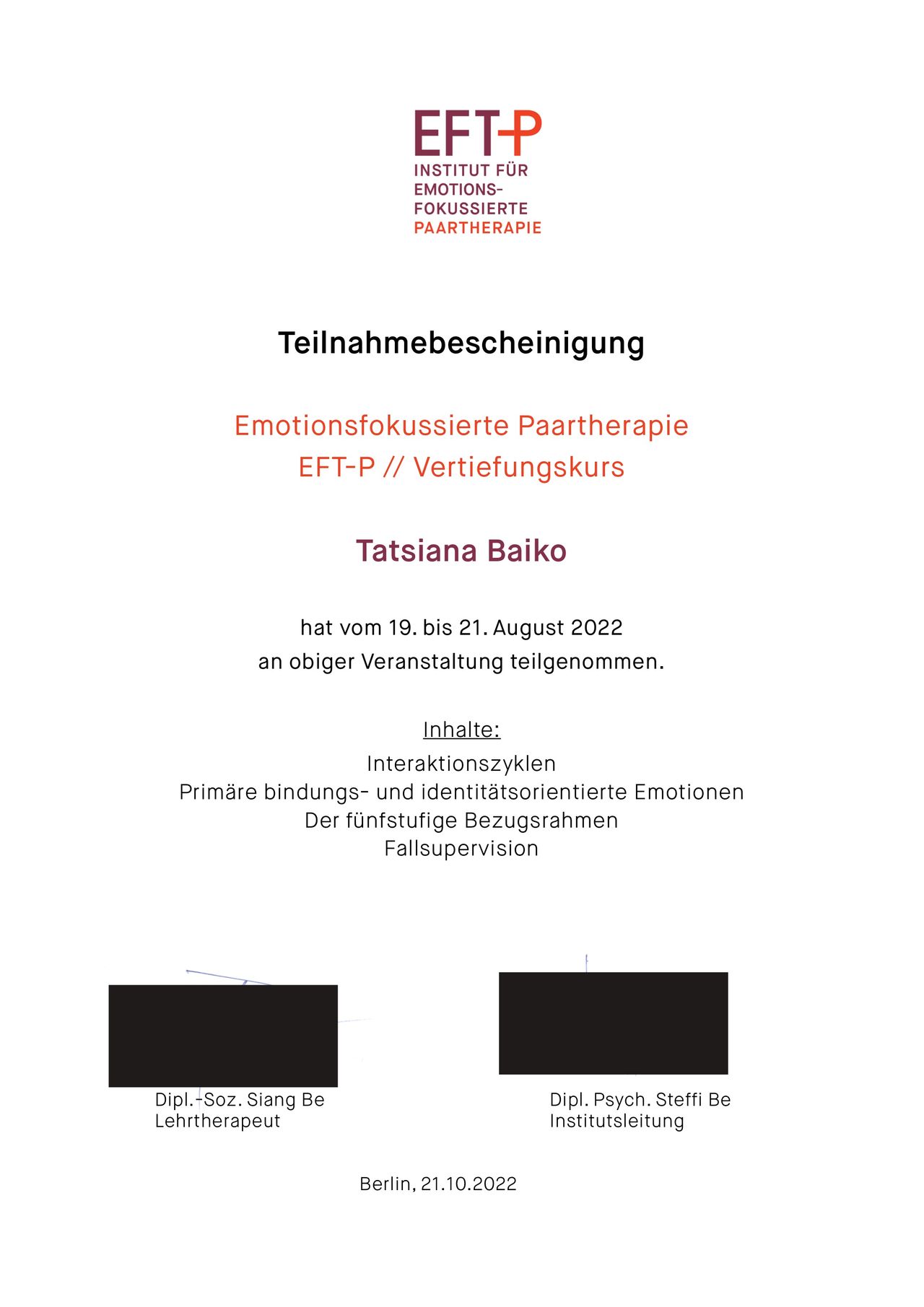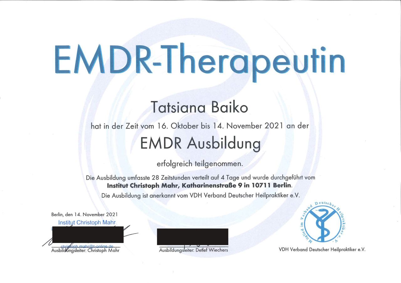 • Privatpraxis Tatsiana Baiko Psycholog. Psychotherapeutin • Paartherapie •