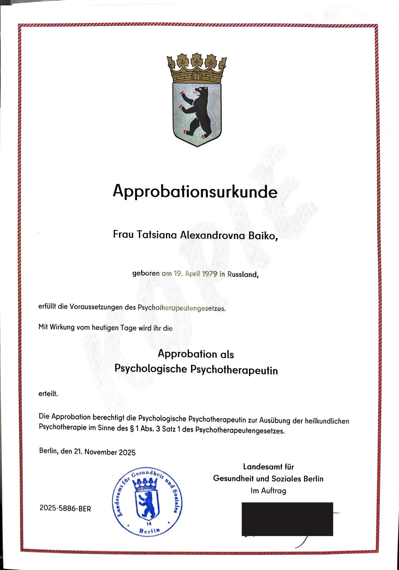 Wir haben uns bei Frau Baiko von Anfang an sehr wohl und gut aufgehoben gefühlt. Sie hat eine angenehme und sympathische Art, sodass es meiner Freundin und mir total leicht fiel, offen zu sprechen, vielen Dank!• Privatpraxis Tatsiana Baiko Psycholog. Psychotherapeutin • Paartherapie •