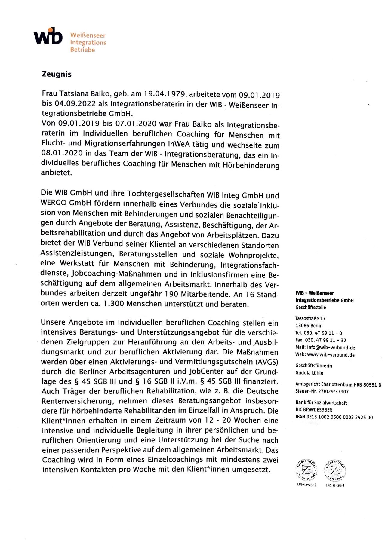 Welche Sprachen spricht Dipl.-Psych. Tatsiana Baiko?Sie können sich mit Dipl.-Psych. Tatsiana Baiko auf Deutsch (Deutsch), Russisch (русский) unterhalten.
